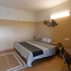 The design enriches a palette of calm, natural colours and materials sourced locally. Red oxide flooring brings a warm and earthy presence, while local patal stone and indigenous wood lend texture, durability, and visual harmony. These materials integrate seamlessly into the traditional setting and help maintain an atmosphere of simplicity and tranquility.